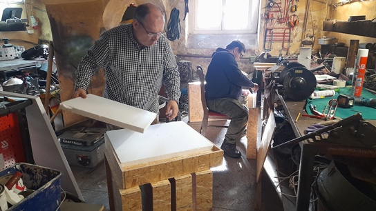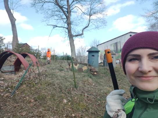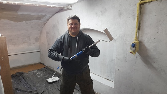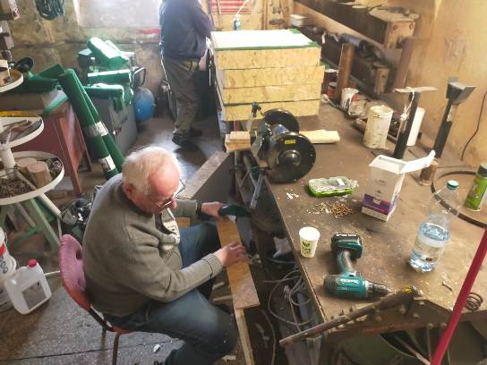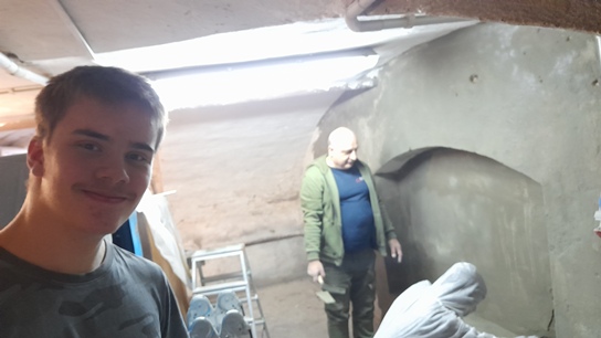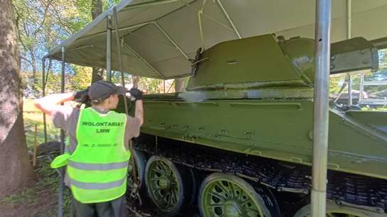 Rok zaczęliśmy od wykończenia prac przy stworzeniu szatni dla wolontariuszy. Za zgodą dyrektora LMW jeszcze jesienią 2024 uprzątnęliśmy jedno z pomieszczeń warsztatowych i oczyściliśmy ściany z odpadającego tynku i łuszczącej się farby. Następnie całość porządnie została zagruntowana, uzupełniliśmy ubytki tynku i malowanko. Po remoncie w pomieszczeniu pojawiły się ławki, wieszaki, stół, szafka na ciuchy i środki BHP, a nawet czajnik. Teraz praca w muzeum jest znacznie wygodniejsza.