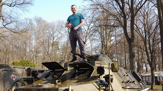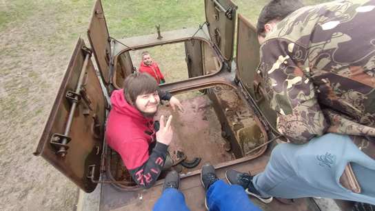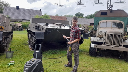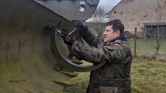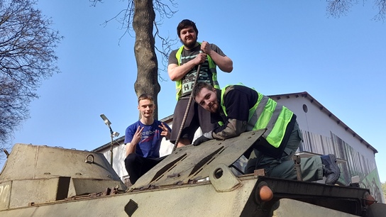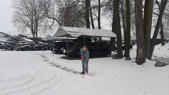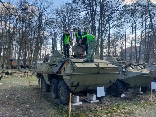 Początek roku to także prace w parku. Odśnieżanie, grabienie, mycie, wywożenie gałęzi i drzewa. Słowem ciężka harówka, którą urozmaicaliśmy pracami w przedziale desantowym transportera opancerzonego SKOT-2AP. Zaczęło się od odkurzania wnętrza…a przerodziło się w remont kapitalny tegoż przedziału. Czyścimy łuszczącą się farbę, zdemontowaliśmy elementy wyposażenia, które zostały wypiaskowane i pomalowane. Kompletujemy brakujące elementy, uszczelki, farby, peryskopy, reflektory, lampy, itd.