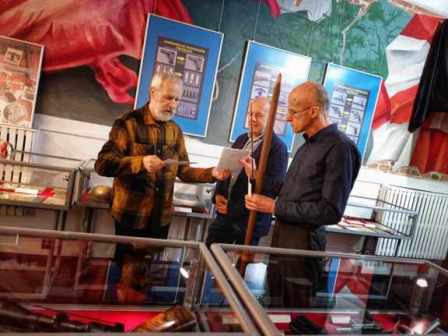 Jubileusz 30-lecia powołania muzeum. Z aktem powołania stoją od lewej Piotr Dziedzic, Zbyszko Piwoński, Włodzimierz Kwaśniewicz. Fot. J. Sobociński