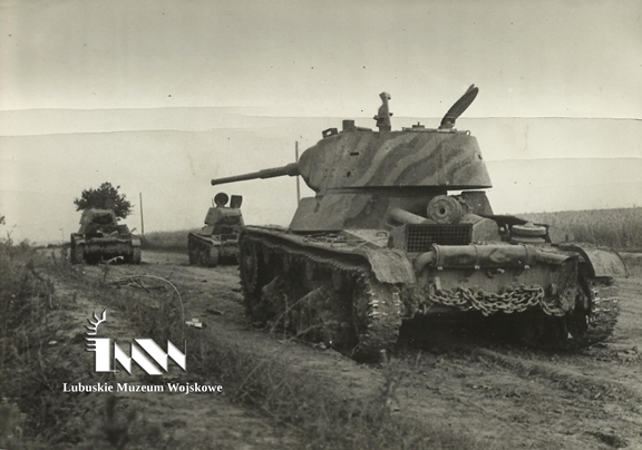 Juli 1941 – auf einem Feldweg, irgendwo in Weißrussland. Drei zurückgelassene sowjetische leichte Infanterie-Unterstützungspanzer vom Typ T-26, Modell 1939, mit 20K-Kanonen, Modell 1934, Kaliber 45 mm. Das Fahrzeug im Vordergrund weist eine nicht standardmäßige Lackierung in den Farben Warmgrün, Sand und Braun (Schwarz?) auf. Auf der Motorplatte befinden sich zwei Ersatzlaufräder mit Gummireifen. Im Juni 1941 verfügten die Panzertruppen der Roten Armee über mehr als 11.000 T-26-Panzer verschiedener Ausführungen. Sie wurden in den Jahren 1931–1941 im Werk Nr. 174 namens K. Woroschilow in Leningrad (St. Petersburg) hergestellt.