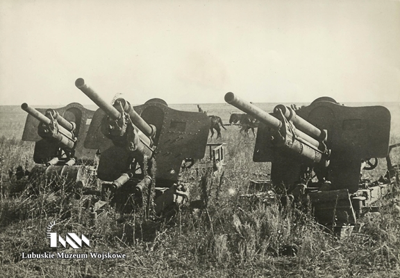 Sommer 1941 – ein deutscher Lagerplatz für erbeutete Kampfausrüstung. Im Vordergrund eine Haubica-Kanone Typ 1937 (ML-20) im Kaliber 152 mm. Zu Beginn des deutsch-sowjetischen Krieges verfügte die Rote Armee über etwas mehr als 2600 dieser Geschütze. Im Hintergrund schwere Feldgeschütze Typ 1931 (A-19) Kaliber 122 mm. Sie wurden hauptsächlich zur Zerstörung von Befestigungen, Artilleriestellungen und Truppenkonzentrationen eingesetzt. Am 22. Juni 1941 verfügten die Russen über 1255 Geschütze dieses Typs (einschließlich des Modells 1931/37). Nach der Übernahme wurden sie bis zum Kriegsende von der Wehrmacht u. a. am Atlantikwall eingesetzt.