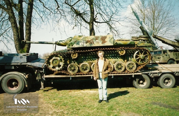 February 2003 – the author posing next to the StuG in the outdoor exhibition at the museum in Drzonów (photo: J. Sobociński)
