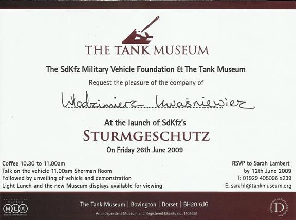 An invitation to the then director of the LMW Drzonów, Dr W. Kwaśniewicz, to the first presentation of the StuG following its refurbishment (LMW collection)